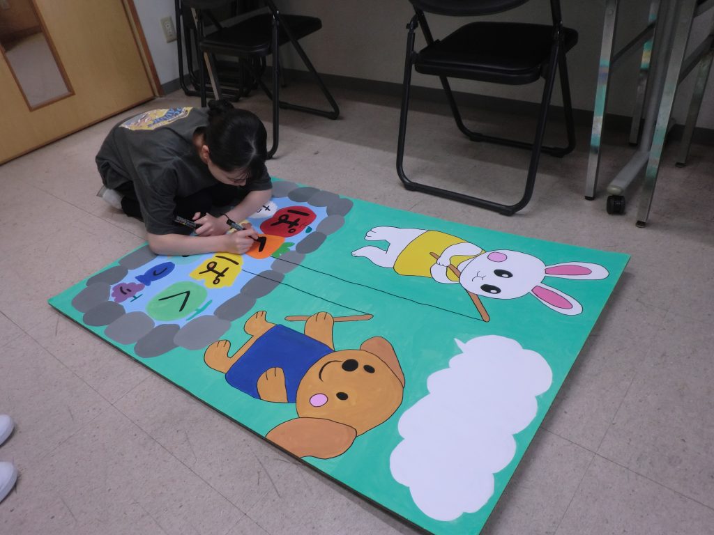 11月1日(土)と12日(日)に本学で開催の、「こどもまつり」の準備真っ只中の保育学科です。1年生は、空き時間等を利用し、子どもたちに喜んでもらえるようにがんばっています。