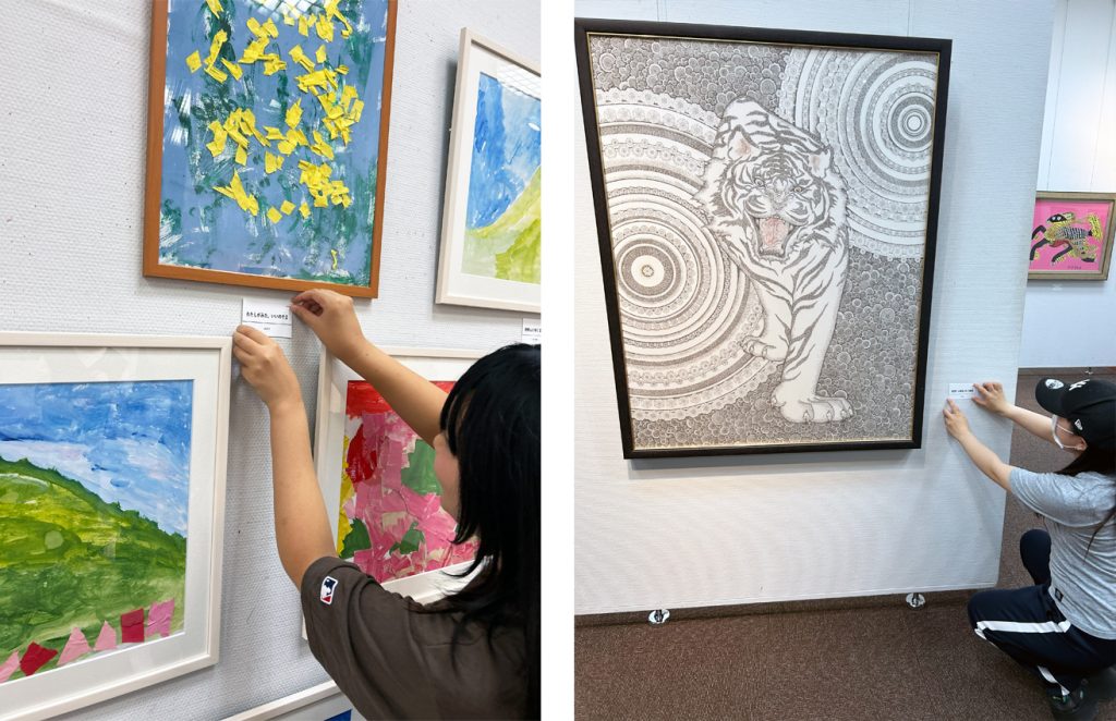 最後に作品タイトルと作者名が書かれたキャプションを作品と同じ作者かを確認しながら貼り付けていきました。