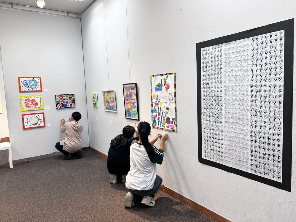 この香川県主催の「香川県障害者芸術祭2025」は、瀬戸内国際芸術祭の開催に伴って3年ごとに行われています。今年は、10月13日㊊・14日㊋にサンポート高松で開催されました。私たち美術研究室では、障害のある方々が制作した作品の芸術理解を深めることを目的に、アートボランティアとして作品展会場である市民ギャラリーの飾りつけをしました。保育学科が毎年冬に保育実習でお世話になっている障害者福祉施設からも多くの作品が出品されています。今年は200点近い作品の応募がありました。