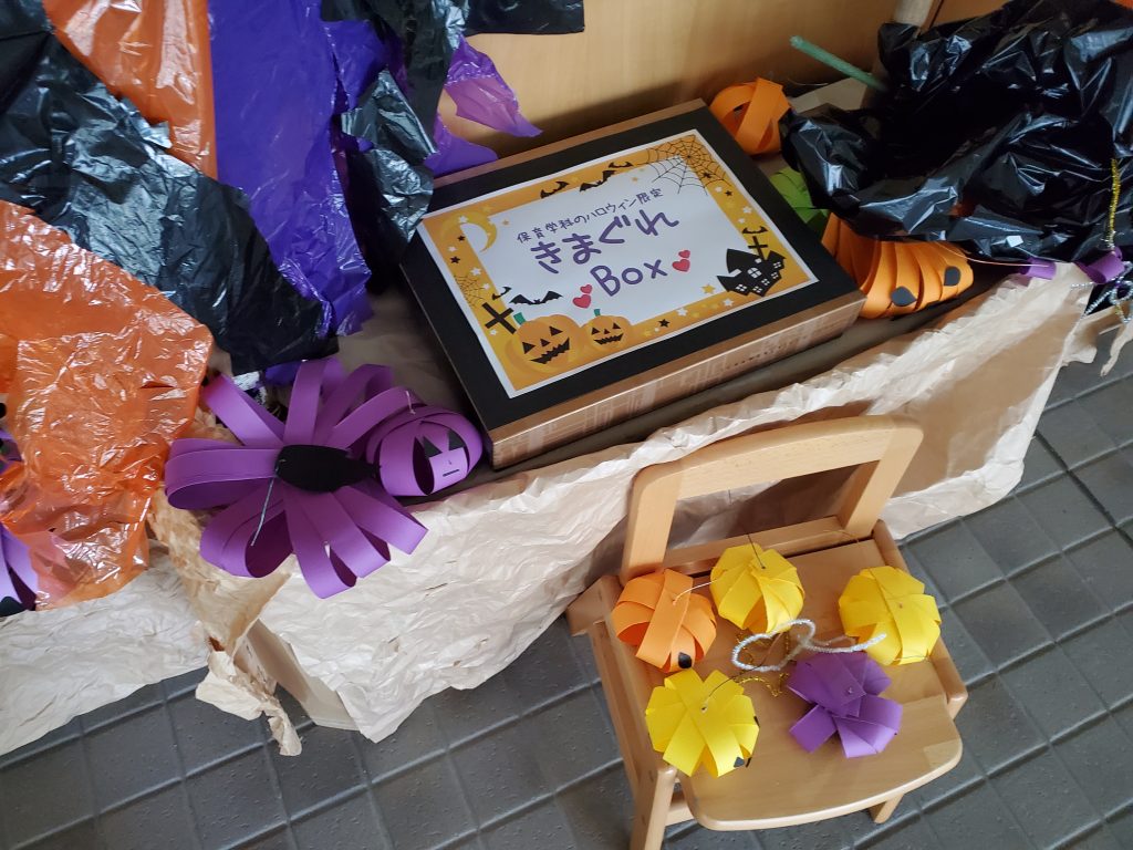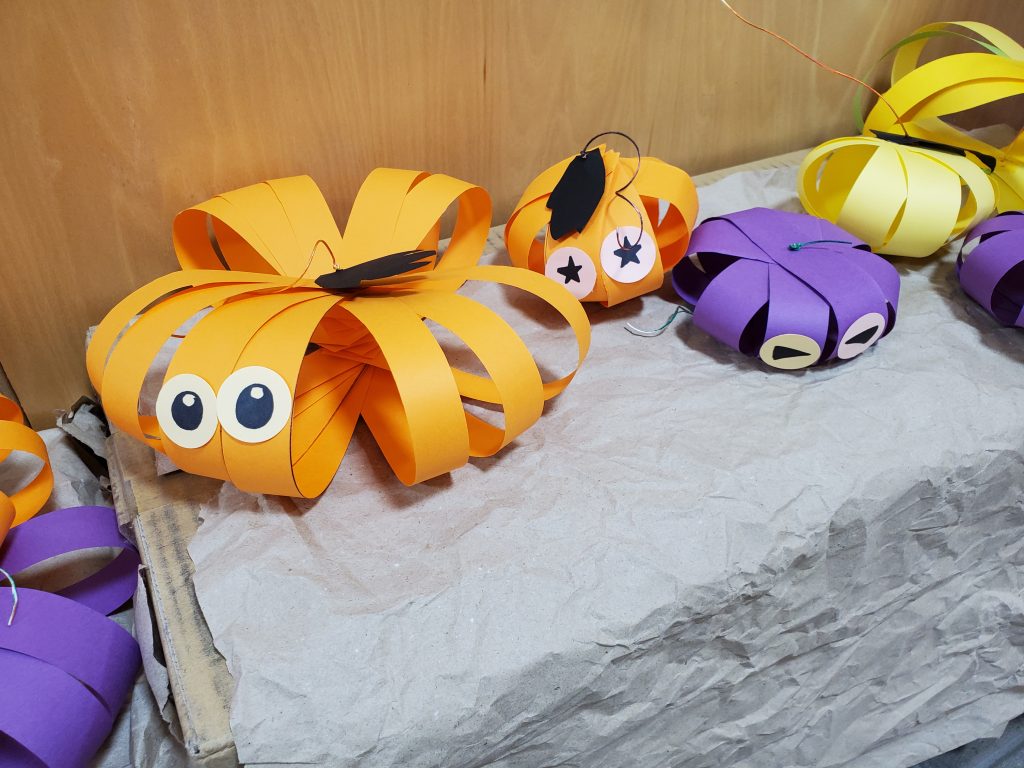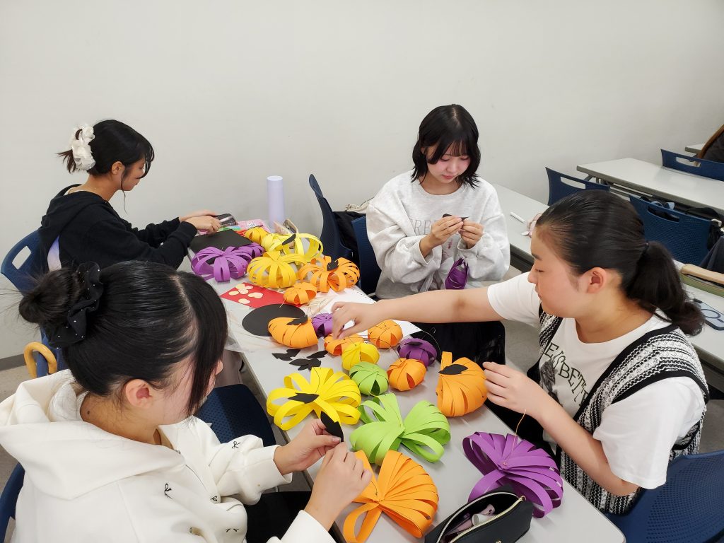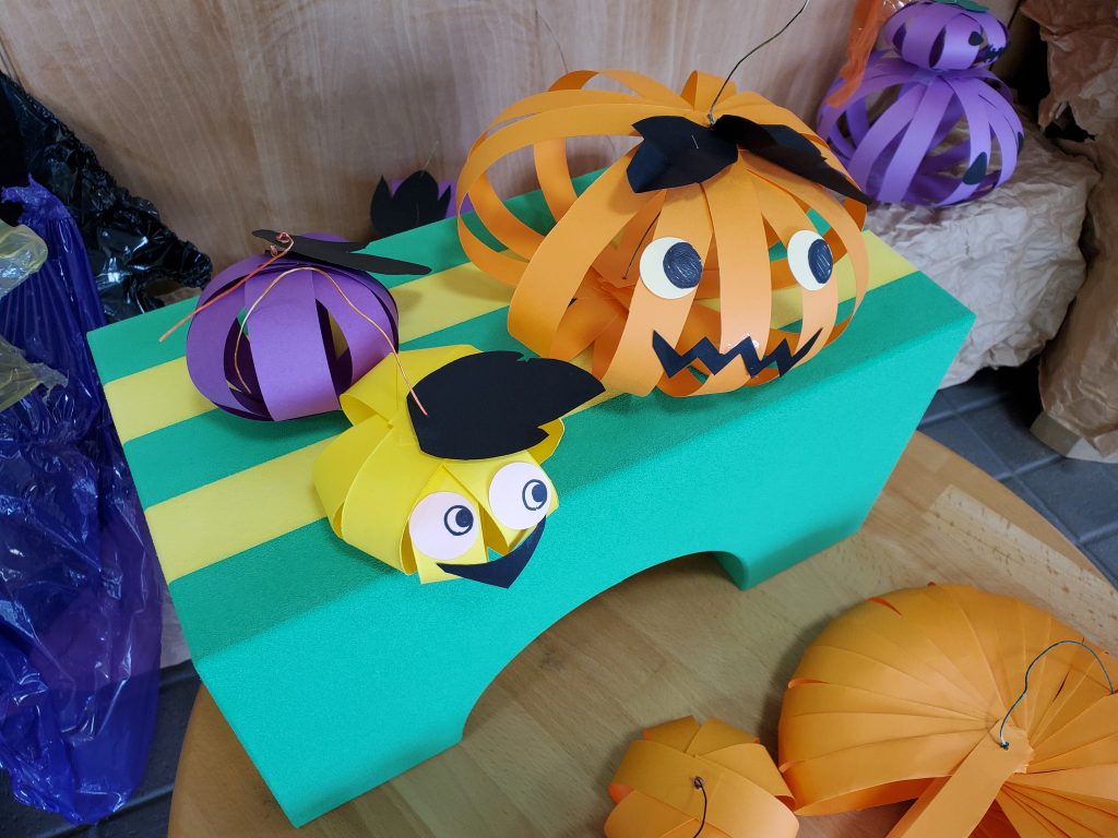 まずは、みんなでかぼちゃづくり🎃遊びに来た子どもたちが持って帰っても良いようにすべて紙だけで制作しました。後は、かわいさも大切にしました💕