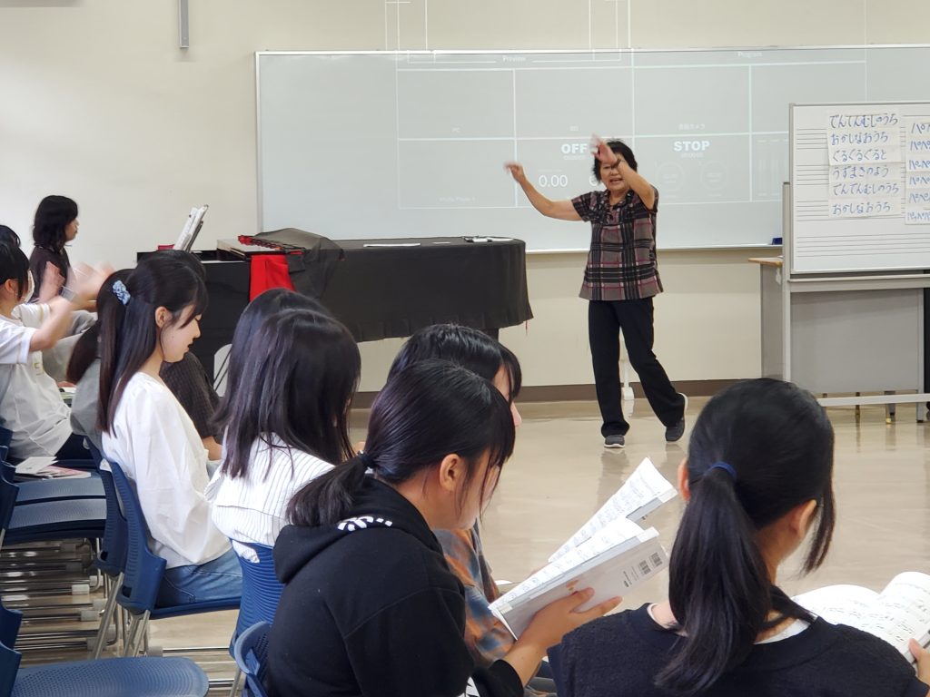 そんな両先生方の温かく熱ーい気持ちの中で保育レクチャーは進みます🔥学生さんたちもワクワクしているようで笑顔が絶えません。歌う声ものびやかで明るく、動きもスムーズで、一体感ある雰囲気が大変良かったと思います。何気ない日常の中に、音やリズムがあると楽しいですね😄そして、それをみんなで一緒にするとより楽しく、いろんなハプニングが起こってもまた楽しい!になります😍そういったことを実感してくれたなら嬉しいです💕