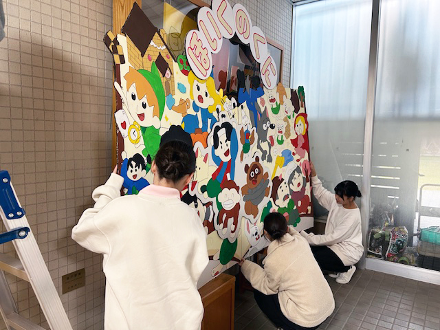 今日は、一足早く美術研究室のみんなが作ったほいくのくにの看板を取り付けました!