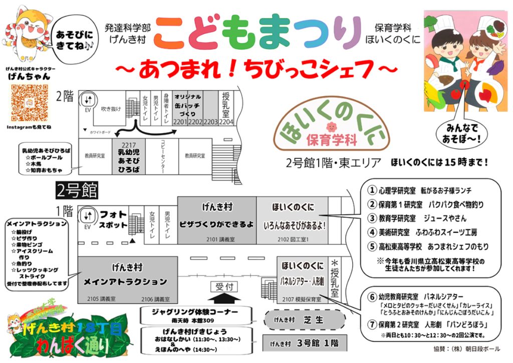 今年の大学祭から保育学科の「ほいくのくに」と発達科学部の「げんき村」が合体して「こどもまつり」としてパワーアップ!今回のテーマは、~あつまれ!ちびっこシェフ~ です。