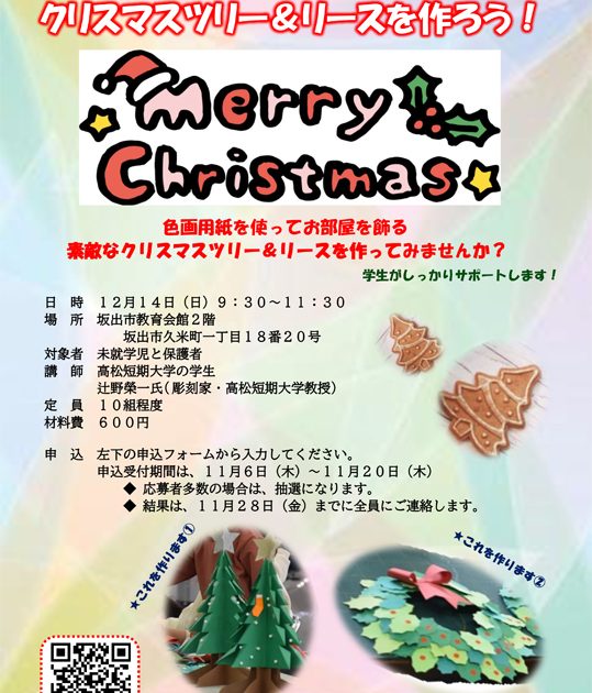 美術研究室では、毎年12月に恒例となっている「冬の親子ワークショップ」を12月14日㊐に坂出市教育会館で開催します!主催者である坂出市文化振興課の職員方が、今年も素敵なチラシを作ってくれました! このワークショップは、対 […]