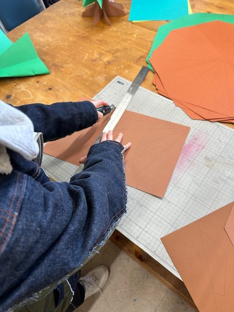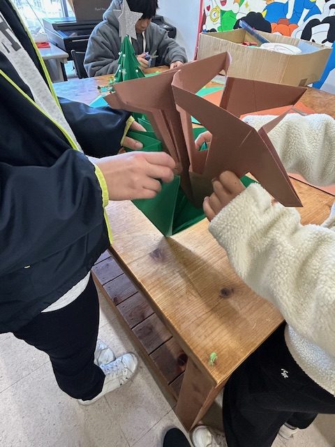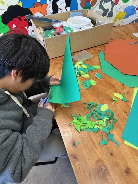 クリスマスツリーの材料をカットして・・・