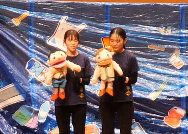物語は、ほーちゃんといっくんが幼稚園で絵本を読んでいるシーンから始まります。海の絵本を読みながら、遠足で行った水族館のお話や大好きな海の生き物たちのお話をしていると。。。不穏な音楽と暗く汚れていく絵本の海…ビックリしたほーちゃんといっくんはそのまま絵本に吸い込まれてしまうのです。吸い込まれた先は暗くて汚れた海の中…周りはたくさんのゴミが漂っています。。。