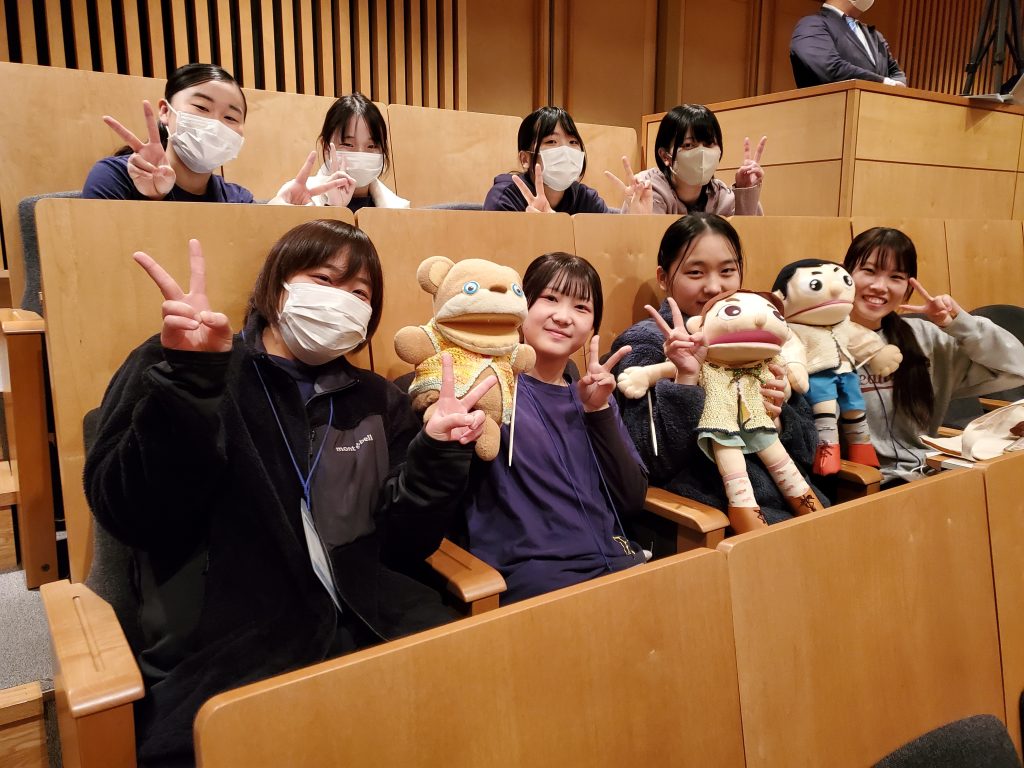 学生の皆さん、大変お疲れさまでした。人形劇を終えて、学生さんからはお互いをたたえ合う言葉が溢れていました。一生懸命がんばったからこそ、感動や感謝いっぱいのピーク(最高に気持ちいい状態)にたどり着くことができたと思います。