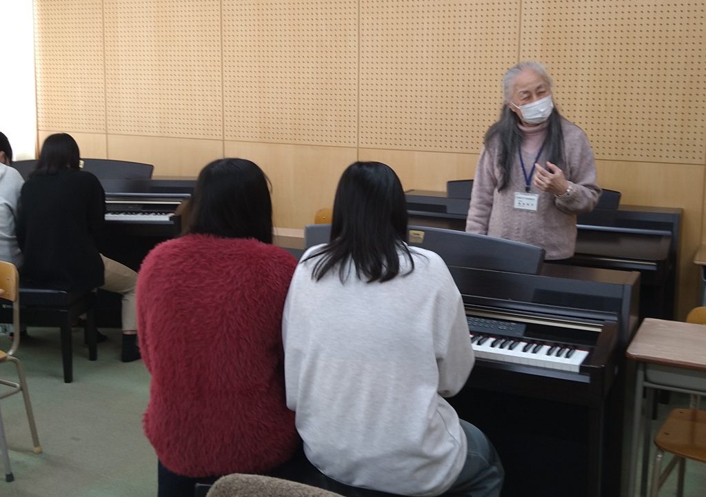 入学予定者に対する「初心者のための入学前ピアノレッスン」第1回を11月22日(土)に実施、その後11月29日、12月6日、そして12月20日で4回目となりました。今回はクリスマス特別バージョン、みんなで一緒にジングルベルを弾いて楽しいひとときを過ごすことができました。