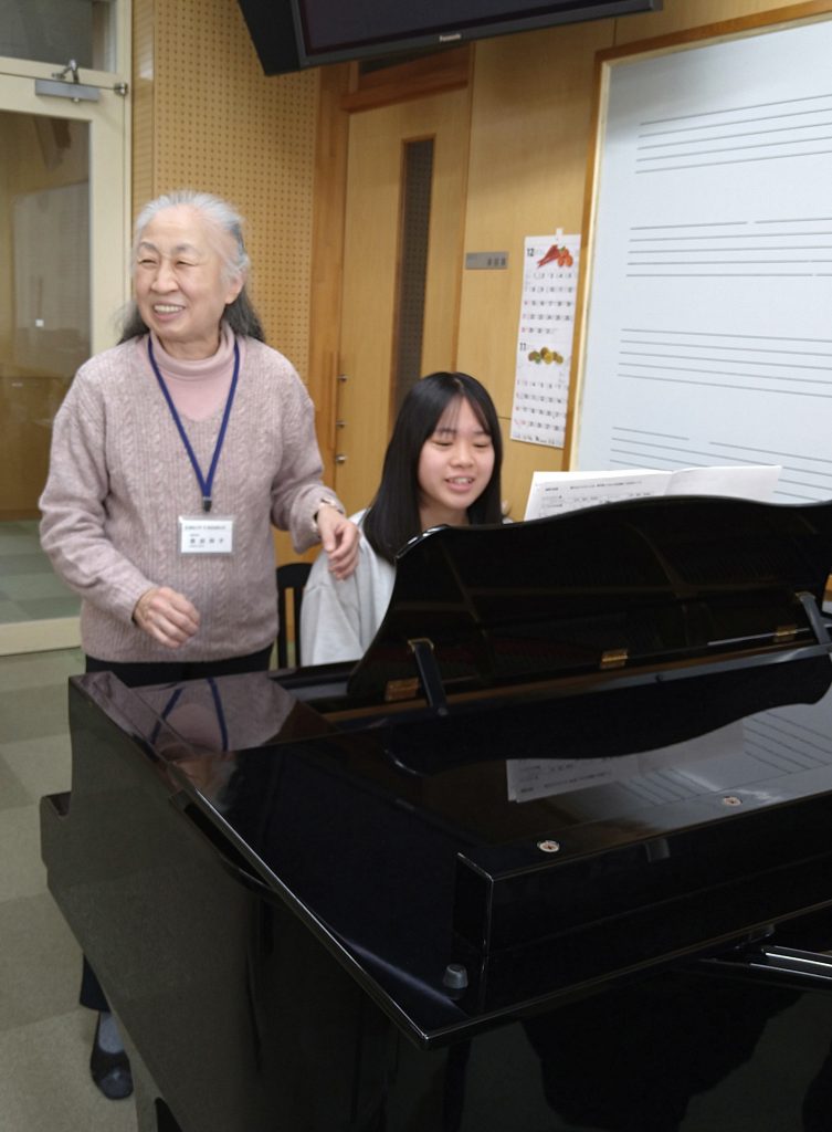 「間違ってもいい、声が十分に出なくてもみんなが歌ってくれる・・」回数を重ねる度に演奏テクニックも身に付き、人前で演奏することにも少し慣れてきたようです。4回続けて参加している人、今日初めて参加した人など様々ですが、授業担当予定の教員がそれぞれの状況に合わせて個別対応するので今後参加予定の方もご心配なくおいでください。
