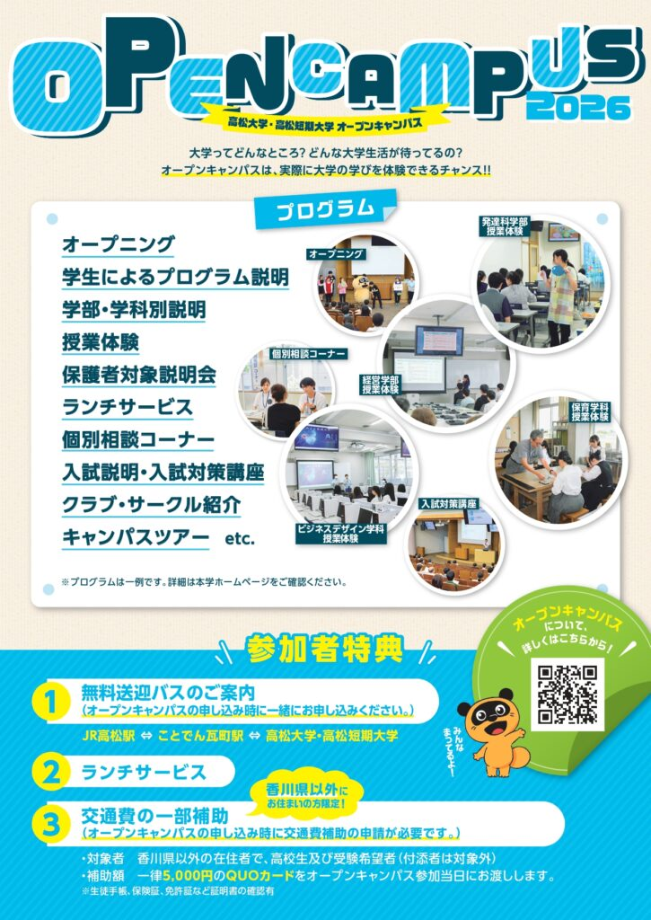 いよいよ、今年も高松大学・高松短期大学の2026オープンキャンパスが始まります。