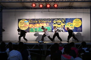 メインステージでは、ご来場いただいた地域の皆様が一緒になって楽しめるようなイベント企画や、クラブ・サークルで日々練習してきた成果を多くの学生が披露します。また、お子様連れの方にも楽しんでいただけるよう、発達科学部による「げんき村」や保育学科による「ほいくのくに」の活動も行います。
