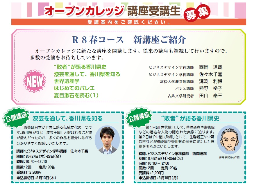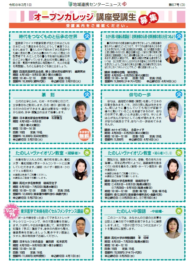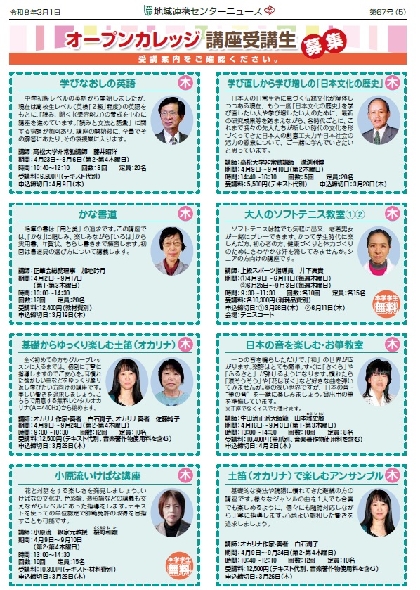 大学を開放して地域の方々にご利用いただくオープンカレッジの各種講座を開講しています。
