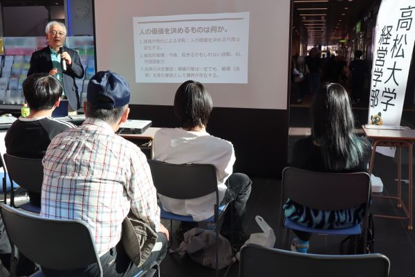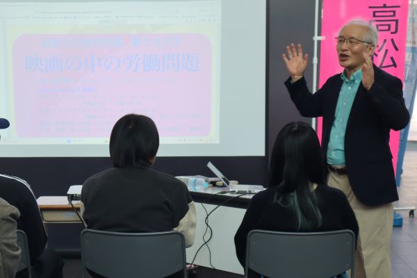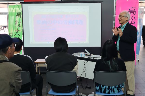 10月24日(金)、高松大学経営学部松繁研究室が、JR高松駅コンコースにて「駅ナカ大学:映画の中の労働問題」を開催しました。