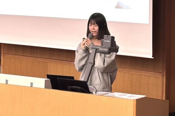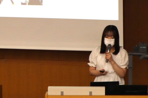 報告会では、佃学長からの挨拶に続き、発達科学部、ビジネスデザイン学科、経営学部からそれぞれ3名の学生が登壇し、現地での交流の様子、印象に残った体験、今後に活かしたい学びなどについて発表しました。
