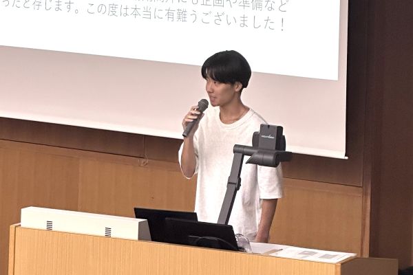学生たちからの謝意を受け、佃学長が、今回のキャンプ実現に至る経緯などについて熱い思いを語り、引率教員を代表して経営学部の稲井教員からは、研修中の学生たちの真摯な姿勢、素晴らしい行動などについて紹介がありました。