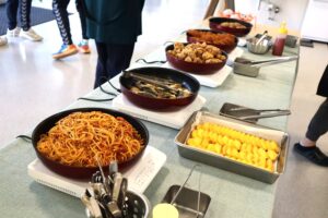 スイーツキッチンカーの出店や食堂でのワンコインバイキングの企画も好評で、お昼休みにはマスコットキャラクターの「たーちゃん」も登場し、隣接するこども園の園児たちも遊びに来るなど、キャンパスはにぎやかな雰囲気となりました。