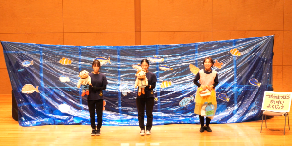 保育学科からは、1・2年生10名が参加しました。昨年度に続き、人形劇を創作して発表しました。テーマは「保育における環境教育~きれいな海と生き物を守るために瀬戸内海を大冒険‼~」で、当日までの準備や練習は毎週水曜日の探究活動でがんばりました。本番までに認定こども園 高松東幼稚園の子どもたちや先生方にも観てもらえたおかげで、とても緊張しましたが、自信をもって演じることができました。