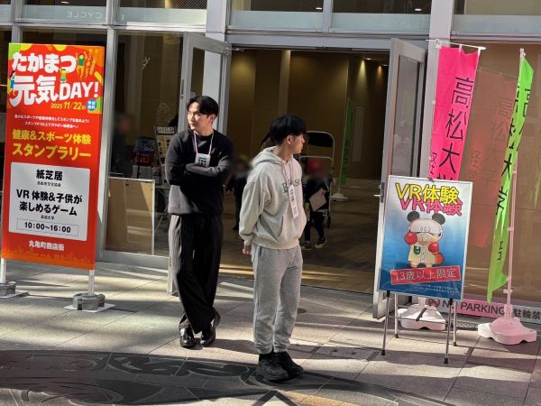 本学は、丸亀町商店街の店舗の一角をお借りし、「VR体験(13歳以上限定)」や「子どもが楽しめるゲーム」を実施しました。