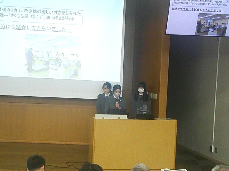 - 三木高等学校の「三木でつなぐ未来へのバトン」については、いろいろな商品開発をされていて、うどんと若者の好きなチュロスを合わせていこうという大変面白いテーマでした。試食ができれば更によかったのではないかと思いました。